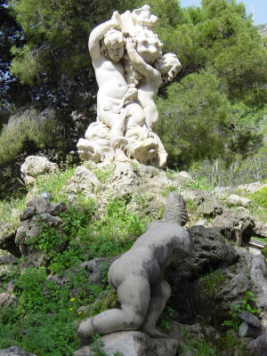 La "Fontana del pescatore" è formata da una gran vasca di marmo, elevata su doppi gradini. Al centro si erge una massa rocciosa a trio, in cima alla quale una coppia di puttini in piedi, poggiati su un gruppo di tre delfini, regge una conchiglia voluminosa. Più in basso altri due puttini si specchiano nell'acqua dando l'impressione di cercarsi. Il puttino che si tiene appoggiato al tronco dell'albero di marmo è mutilo del braccio destro e gli manca la testa. Un terzo puttino più distante dagli altri è seduto sulla pietra che sorge come un sedile nell'atto di pescare, da cui il nome della fontana. Questi puttini, abilmente modellati, seguono lo stile del più grande stuccatore di Palermo Giacomo Serpotta. L'acqua scaturiva dalla conchiglia e dalle bocche dei delfini. Incassata tra le rocce c'è una lapide su cui possiamo leggere un suggestivo invito "PRAEBET AQUAM FONS ARBOR AMICAM SUFFICIT CUIAS ULTRA LASSE VIATO HABES? MDCCXVII", che vuoi dire: "La fontana offre l'acqua, l'albero l'ombra amica, di che cos'altro ha bisogno il viandante stanco?" Un tempo ben sei fontane adornavano lo stradone di mezzomonreale come era chiamato prima l'attuale Corso Calatafimi. La fontana dei Dragoni è di Mariano Smiriglio ed è datata 1630, ultima superstite di cinque fontane che ornavano l'attuale Corso Calatafimi. Molto espressivi i due dragoni. Bella la cancellata. Presente nei pressi una delle ormai rare fontanelle di acqua potabile presenti in città. LO STRADONE DI MEZZOMONREALE Il viceré Marco Antonio Colonna decise nel 1580 circa di far costruire una strada al prolungamento del Cassaro (oggi Corso Vittorio Emanuele che va da Porta Felice a Porta Nuova), quindi alla fine del XVI secolo una via diritta conduceva dalle falde di Monte Caputo (Monreale) fino al mare, attraversando la città, collegandosi poi con la "Strada Colonna" (l'attuale Foro Italico), la via esterna per Messina. Nel 1630 il viceré dell'epoca, Duca di Alberquerque, aveva abbellito lo stradone di Mezzo Monreale con cinque artistiche fontane dislocate lungo il suo percorso dal Piano di Santa Teresa (Piazza Indipendenza) fino alla Rocca. Di queste fontane oggi ne rimangono solo due: la fontana Dei due dragoni e la fontana Del Pescatore, La prima è posta in una piccola esedra di fronte all'Albergo delle povere; la seconda, scolpita da Ignazio Marabitti, si trova alla fine della strada sotto Monreale, in vista della Conca D'oro. LA FONTANA DEL PESCATORE La prima fontana che s'incontra sulla strada che da Palermo porta a Monreale è situata all'interno della prima curva ed è quella del "Pescatore", eseguita dallo scultore Ignazio Marabitti nel 1768. Essa costituiva certamente un invito allettante per il viandante stanco a dissetarsi e a godere, seduto sui sedili, all'ombra sotto gli alberi, con la vista della Conca D'oro. Nella seconda metà del Settecento il nuovo Arcivescovo di Monreale Francesco Testa, uomo di eccezionale personalità e cultura, avvia un proficuo sodalizio con Ignazio Marabitti, uno scultore che in questo momento monopolizza tutto il settore delle statue nella città di Palermo e dintorni. La vecchia strada costruita dall'Arcivescovo, che precedette Francesco Testa era troppo scomoda perché ripida e mal ridotta. Cosi Francesco Testa intervenne e fece costruire la nuova strada, quella che attualmente collega Monreale con il quartiere Rocca, facendo intagliare i fianchi della montagna. Arricchì la strada con diverse fontane artistiche che da una parte servivano da abbeveratoi per gli animali da tiro e dall'altra parte invitavano lo stanco viaggiatore a sostare per ammirare il bel paesaggio della Conca d'Oro, chiamata così perché il riflesso del sole sugli agrumi sembrava una copertura di puro oro. La "Fontana del pescatore" eseguita dallo scultore sopra citato, è la prima che s'incontra salendo per Monreale. Segue la "Fontana del Drago", ad un centinaio di metri e la Fontana di Lodovico Los Conveos. |